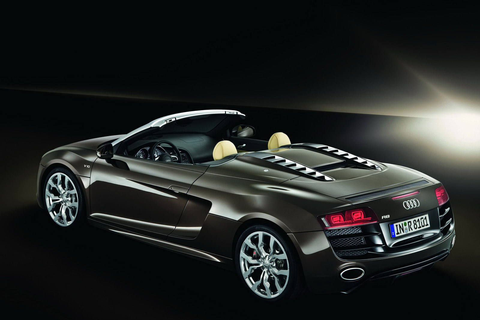 The German close did not broadcast any photos of the R8 Spyder 4.2 V8 FSI, but don't apprehend any noticable differences over the V10-powered archetypal featured in the angel arcade below.